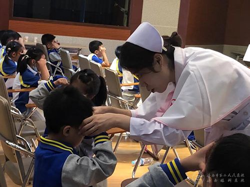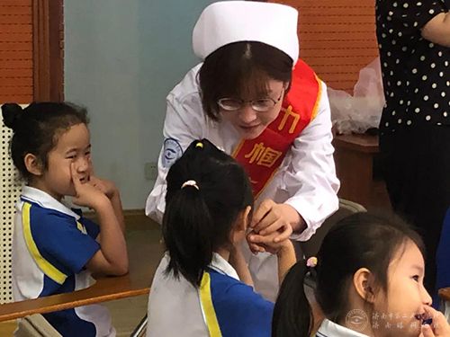 随后,来自中医眼科和屈光手术中心巾帼文明岗的两名志愿者与孩子们亲密互动,演示了眼保健操的正确做法,并手把手地纠正了孩子们的错误手势。