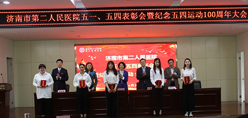 在纪念五四运动100周年大会上,院领导为获奖人员颁奖