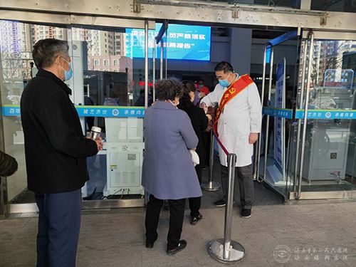 为充分发挥党支部的战斗堡垒作用和党员的先锋模范带头作用,进一步做好疫情防控工作,自2020年3月起,济南市二院行政党支部开展了以“战疫不松懈·党旗在身边”为主题的“党员示范岗”志愿服务活动。此次志愿服务活动主要是由行政党支部的党员志愿者开展门诊秩序维护值守工作,指导患者正确排队、乘坐电梯及等候;协助患者挂号、候诊、检查及办理出入院手续;指导患者保持一定距离,维持就诊秩序,合理安排检查项目;向患者及家属宣传疫情期间防护知识及疾病相关知识等一系列志愿服务。