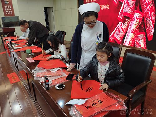活动在医院门诊病房楼七楼会议室举行,邀请了职工中书法爱好者作为主角,他们挥毫泼墨,把新春的祝福和美好的期盼,书写在火红的春联里。