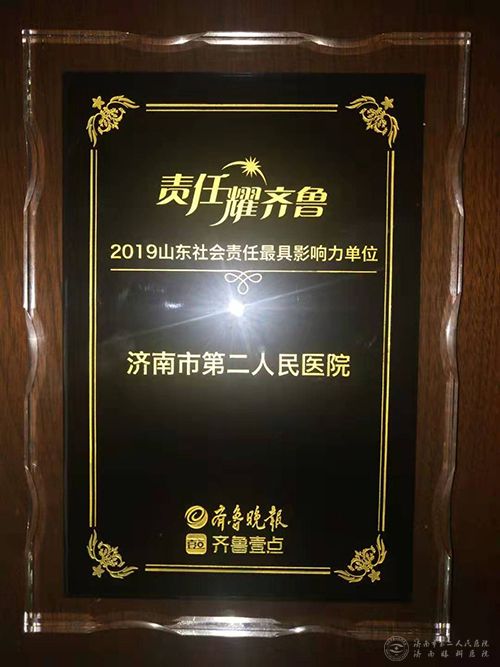喜报!济南市二院荣获“责任耀齐鲁”2019山东社会责任最具影响力单位