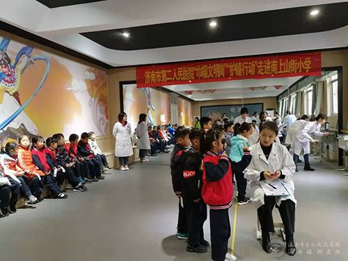 与济南市市中区教育和体育局联合举办的“护瞳行动”大型志愿服务项目再次走进济南市南上山街小学,为学校一年级的新同学进行眼健康查体。医院副院长曹传洲和学校校长王红林亲临现场,实地了解一年级新同学的眼健康状况。