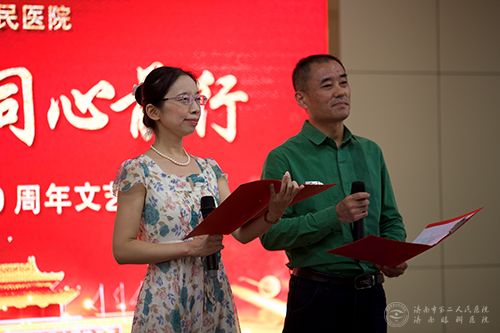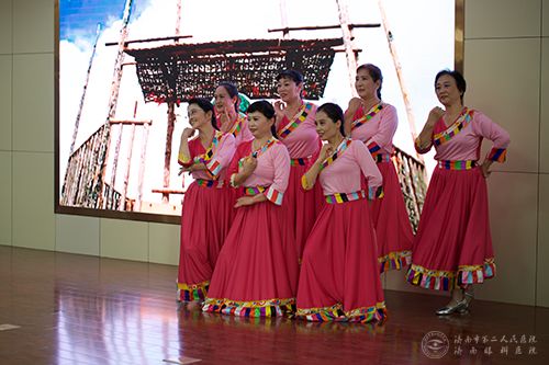 “历史烛照时代,榜样传承精神”,晚会在眼科主任们的朗诵《榜样的传承》中正式拉开序幕,朗诵讲述了陈智慧、芦信义、张华为代表的老一辈优秀二院人的故事,歌颂他们一生全心服务患者,发展医学事业的感人事迹;节目巧思不断,一场《民族服装表演》深深感染了现场的观众,全院护士长逐一登台,一改往日温柔严谨的工作状态,活泼热烈,彰显了56个民族团结一心的美好场景;而相声作为中国传统表演艺术,语言幽默、表情夸张,眼科王旭主任携学生自编自演的《欢乐时光》给大家带来无尽的欢乐;“唱红色经典,抒时代豪情,歌繁华盛世,展二院风采”,院领导、离退休职工和医技分会职工联袂献上的红歌大联唱《我和我的祖国》、《没有共产党就没有新中国》、《歌唱祖国》将演出推向了高潮,表演者饱含深情地歌唱着他们心中伟大的祖国;在庆祝祖国母亲生日之时,韩艳主任送上一首《最美的歌唱给妈妈》,诉说心底的赞美之情;朗诵《诗意中国》用文字描绘出祖国一幅幅美丽画卷,用优美的词语勾勒出祖国一座座壮美山峦;离退休干部和实习学生合作的葫芦丝、二胡《乐器联奏》展现了市二院老带新、新敬老的优秀传统;“世上有朵英雄的花,那是青春放光华,铮铮硬骨绽花开,漓漓鲜血染红它”,舞蹈《绒花》旋律优美抒情,情深意笃,感人肺腑;岁月如歌,青春作伴,眼视光临床学院学生带来的朗诵《以青春的名义》奏响了青春之歌;捧出洁白的哈达,斟上浓郁的青稞酒,离退休职工载歌载舞,舞出她们《心上的罗加》;节目中不乏新生代的声音,年轻人中火热的非洲鼓也被手术室的小姐妹们搬上了舞台;体现中国传统特色的锣鼓也没有缺席,伴着喧天的锣鼓,内科的三句半《夸夸咱二院》带来了欢声笑语。作为晚会的压轴大戏,医院“光明畅响”合唱团的一曲《天路》,以和谐优美的声音、昂扬进取的精神面貌散发出无穷魅力,惊艳全场,为文艺汇演画下了圆满的句号。