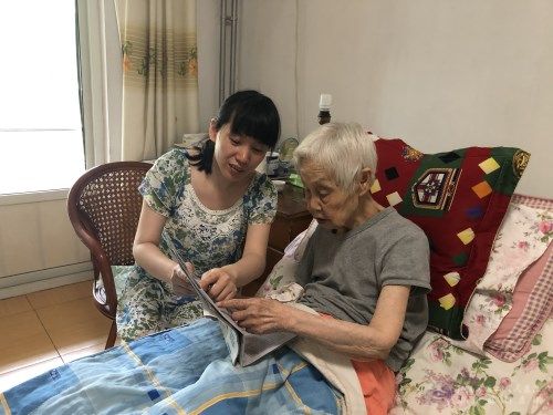 为老人读报纸