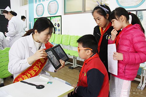 “巾帼文明岗”积极行动起来,组织岗上的成员加入志愿者行列,为南上山街的学生们进行眼健康查体,全力助力医院发起的“护瞳行动”。