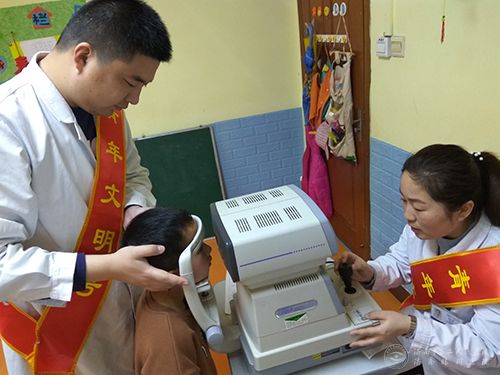 开展“青年文明号在行动·走进幼儿园”系列公益志愿活动,来到位于匡山社区的博 乐幼儿园为小朋友们进行眼科义诊。