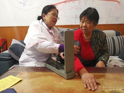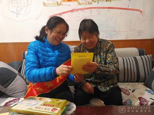 王学珍老人今年75岁,儿女都在外地,自己独居济南,患有心脑血管疾病,内二科的医护人员是她家的“常客”。在她看来,内二科的医护人员如女儿般的关怀和安慰,让她感受到了浓浓的亲情。医护人员不仅询问了老人的身体和生活状况,还为她量血压、做心电图、进行心肺听诊、肢体活动度检测等,并根据老人近期的身体情况,进行了药物指导和健康宣教。王学珍老人拉着护士的手激动地说:“你们比亲女儿还亲。”