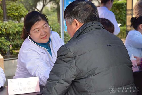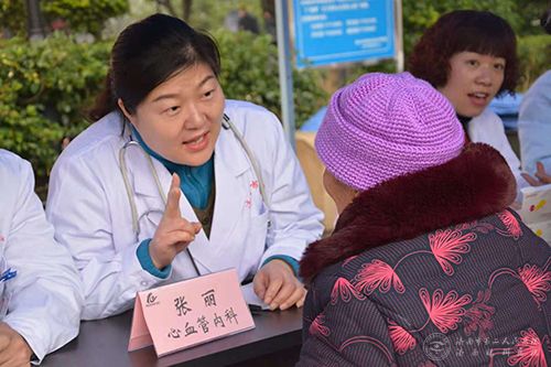 早上8点30分,义诊活动拉开了序幕。虽然气温较低,中间又下起了毛毛细雨,但是听说有山东专家参加义诊,打着雨伞前来参加义诊的市民依然络绎不绝。平日里热闹的广场,没有了欢歌,没有了舞步,取之而来的是百姓们期盼的驻足和有序的等待。作为赴重庆市武隆区进行健康扶贫的医疗专家团之一的张丽也参加了这次义诊活动。义诊中,她认真地为每一位前来问诊咨询的群众进行疾病咨询,积极普及医学常识和健康知识。一上午,张丽就接诊了30余人,用她的话说“居民们太热情了,下着雨都打着伞排队等。但发现的问题确实也很多,居民普遍缺乏健康意识,身体不舒服也不治疗,比如血压很高但只要没有影响到生活就不用药,糖尿病患者对饮食控制意识也比较差,这些问题都会严重影响人们的健康,需要进一步普及科普知识,让更多人知道如何合理的防病治病。”时间在忙碌中很多的过去了,几个小时张丽都忙得没抬起头,就诊群众连连称赞她的耐心细致。