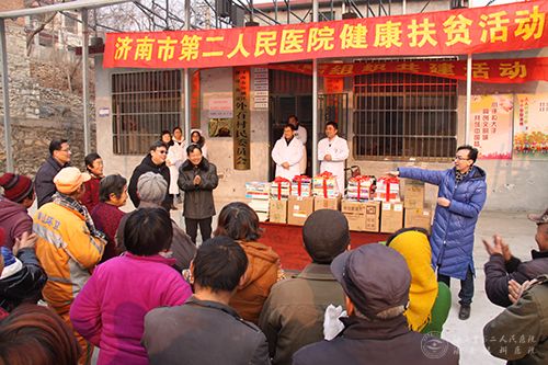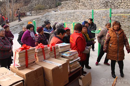 市二院党委书记牟鑫代表医院为村民送上了职工们捐赠的图书