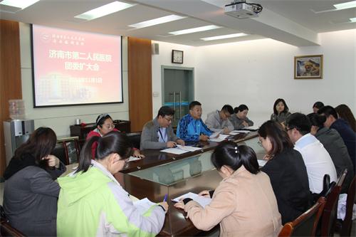 召开团委扩大会议,传达共青团济南市第十七次团代会精神,讨论2019年度医院青年工作方向。市二院党委书记牟鑫出席会议并讲话,院团委委员、团支部书记、青年文明号号长、泰山医学院眼视光学临床学院团干部、优秀青年代表出席参会。