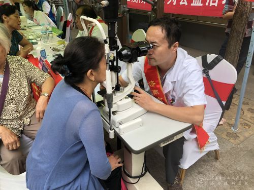 虽然天公不作美,但阴沉沉的天气仍难挡社区居民前来的热情。“这是我的病历,您能帮我看一下吗?”“这里能查眼睛吗?”“您看一下我的眼睛这里红红的,是因为什么啊?”“您看看我有没有白内障,需要做手术吗?”早上义诊活动还未开始,展台前早已围满了前来咨询的市民,听着市民们一句一句急切的询问,义诊团队专家早早进入状态,耐心细致地解答社区居民有关眼病预防及治疗的问题,利用裂隙灯等眼科检查设备,为市民们提供眼科专业检查。护理人员为前来咨询的居民测量血压,发放眼科科普宣传册、视力表等,到义诊结束为止,志愿者们共发放视力表、宣传册百余份。整个义诊过程,现场气氛十分活跃,专家们没有丝毫的休息时间,一直忙碌在各自的询诊、检查中,群众对此次活动都赞不绝口。