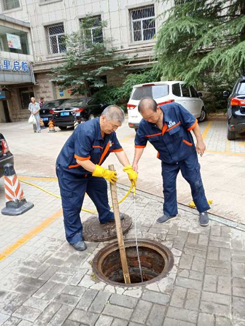 物业人员清理下水道