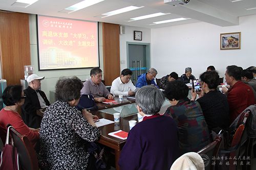 4月19日下午,云顶赌场app 离退休支部按照院党委的要求,组织开展了“大学习、大调研、大改进”主题党日活动。院党委书记牟鑫、离退休支部党员30余人参加了主题党日。