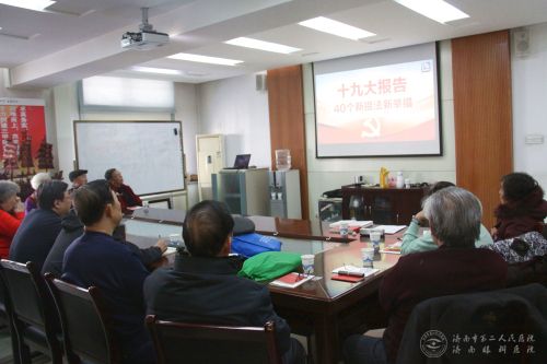 离退休党支部组织召开离退休党支部十九大报告学习会,院党委书记牟鑫以及30余名离退休党员参加了学习会。