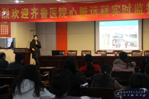 监护站”揭牌。揭牌仪式后,伊院长进行了《远程心电监测技术及临床应用》专题讲座,介绍了心电远程监护的发展及齐鲁医院的发展,并对市二院使用的系统进行了详细介绍及教学,让大家了解了具体的工作流程。最后,市二院心电图室主任高爱玲介绍了工作站的工作情况和今后的发展方向。