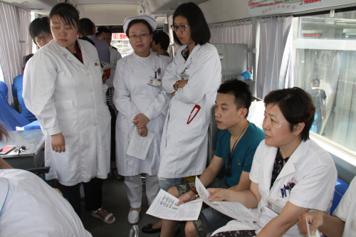 尽管天气闷热难耐,但献血车前,市二院的干部职工们排起了一条长龙,他们中有医生护士,也有行政后勤人员,有刚工作不久的年轻人,也有临近退休的老同志。有人是第一次献血,也有人连续献血了好多次。大家纷纷表示“自己小小的付出能够帮助他人,是非常有意义的,学习雷锋,就是学习他全心全意为人民服务的热情和崇高精神,无偿献血,十分光荣”。献血现场,血液中心工作人员进行了一系列检查工作,填表、体检、化验、等候、抽血、休息,所有流程都在医院工作人员的协调下井然有序地进行。