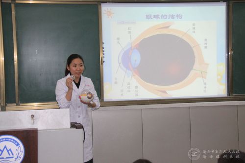 市二院眼表疾病专业主治医师党惠为1年级的40余名同学作了题为《爱护心灵的窗户》的专题讲座。党惠医师在讲座中运用活泼生动的语言,向同学们深入浅出地讲解了人的眼球构造,以及眼外伤、近视以及散光等儿童常见眼病的防治知识,并在课件中穿插大量资料图片,进一步帮助大家加深理解记忆。在近30分钟的讲座中,孩子们被讲座内容深深吸引,在授课医师的引导下他们认真听讲、踊跃发言,与授课医师积极互动,热烈而又轻松的气氛感染了在场的每一个人,很多学生在讲座结束后依然意犹未尽,要求了解更多的眼健康知识。