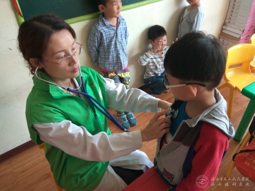 “健康驿站”志愿者来到匡山街道办事处博乐幼儿园,为孩子们进行了健康体检。