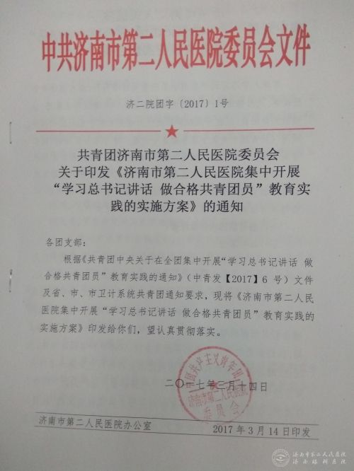 共青团迅速行动。3月15日下午,召开市二院共青团“学习总书记讲话、做合格共青团员”教育实践动员部署会,全院5个团 支部的书记及委员参会,院党委书记牟鑫出席会议并讲话。