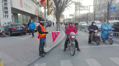 志愿者在路口执勤