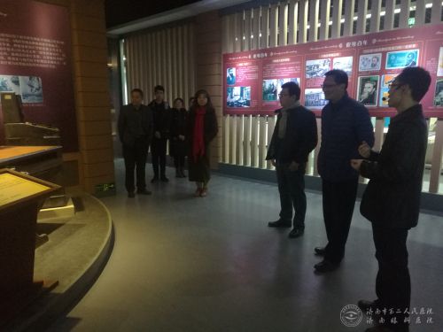 近日,云顶赌场app (济南眼科医院)党委书记牟鑫,纪委书记、副院长程晓麟和相关职能科室负责人到泰山医学院商讨教学医院建设相关事宜,泰山医学院党委书记王长松、副院长王鹏程、教学实践部主任孙国文、副主任蒋士民、副主任王目君参加会谈。牟鑫书记一行还参观了泰山医学院校史展览馆、医学影像博物馆。(王俊峰)