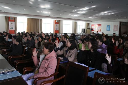 市二院党委书记牟鑫在讲话中强调,新一届妇委会要以党的十八届六中全会精神为统领,进一步提升女职工整体素质,以开展创建“巾帼文明岗”活动为平台,在广大女职工中努力营造“工作学习化、学习工作化”的良好氛围,为推动医院事业发展贡献力量。