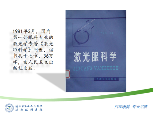 正如这本“激光眼科学”,它像“传家宝”一样珍藏在医院里,虽然尘封已久,但却真实记录下了二院百年奋斗史,并将一如既往地激励着一代代二院人续写光明的传奇!