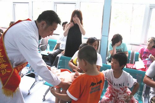 在济南市二院眼科门诊,每天都是人头攒动,前来就诊的患者络绎不绝,其中,儿童患者数量明显增多,医院门诊大厅里随处可见带着孩子前来就诊的家长们。虽然医院已实行了预约诊疗,但由于患者激增,还是出现了排队候诊的场景。为了让患者安心就医,医院将门诊志愿服务纳入“党建活动月”内容之一,组织党员在门诊开展导医、咨询、送绿豆汤等志愿服务活动。在门诊大厅,每天都有党员同志身着绶带,一边为患者提供问询、导诊等服务,一边为他们送上解暑的绿豆汤。