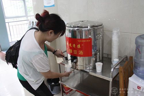 当一杯杯满载着浓浓爱心的绿豆汤送到患者手中时,大家都感动不已,连连夸赞医院的服务暖人心,不仅让大家在闷热的天气里感受到了一丝清凉,更感受到医院对患者的深切关怀。(林绍静)