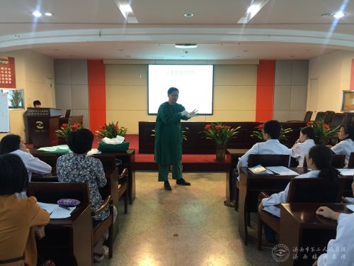 此次培训由医院党委副书记、纪委书记、外科专家程晓麟主讲,程书记首先向大家阐明了手卫生尤其是外科手消毒规范 操作的重要性,讲解了外科手消毒的相关知识,并现场演示了外科手消毒以及穿脱手术衣的标准操作流程。培训还专门安排了手术医生日常洗手视频以及现场医生演示两个环节,针对性地对现实存在的问题进行了一一点评。参会人员仔细聆听、认真观看,积极参与互动,共同探讨如何进一步规范手卫生。