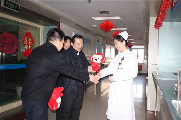 (济南眼科医院)慰问一线职工,代表市卫计委对春节期间坚守工作岗位的医护工作者表示衷心的感谢,并送上新春的祝福。