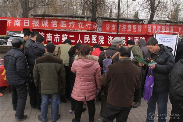 和《济南日报》联合开展的一项以爱眼护眼为主题的公益 行动。市二院的专家队伍定期走进社区、校园、企事业单位、乡村、部队等不同行业、不同人群中,免费为市民检查眼睛,开展爱眼知识宣传,把眼健康送进千家万 户。(黄烁)
