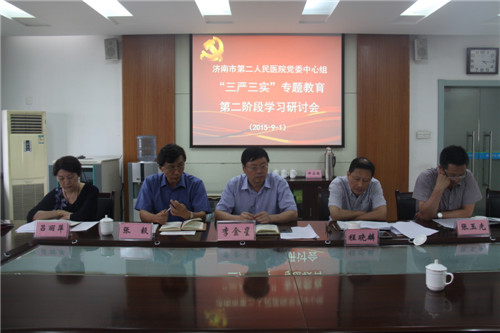 学习研讨活动分两项内容进行。首先,领导班子成员集体学习了习近平总书记关于严守政治纪律和政治规矩的一系列重要讲话以及论述刘云山同志7月31日在“三严三实”专题教育工作座谈会上的讲话精神。随后,院领导们分别联系各自思想和工作实际进行了发言,深入查摆了身边的“不严不实”问题,剖析了原因并提出了改进措施。党委书记、院长李金星在总结发言中要求大家遵循医院管理的科学规律,以“严和实”的精神和态度履职,求真务实推进医院事业的发展。(朱希博)