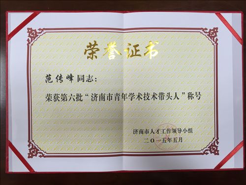 (济南眼科医院)眼二科主任助理、副主任医师范传峰同志受到中共济南市委、济南市政府联合命名表彰,被授予第六批“济南青年学术技术带头人”荣誉称号。