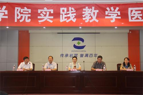 会上,李金星院长代表医院对泰安医学院领导的到来表示热烈欢迎,并就二院的基本情况、教学工作的开展情况以及今后教学工作的发展方向做了介绍。李院长指出,校院合作是医院事业全面协调可持续发展的重要路径,泰山医学院作为一所高水平的医科大学,在省内外享有较高声誉,师资力量雄厚、办学理念先进,在教学、科研、人才培养、社会服务、对外合作交流方面成绩显著。此次二院成为泰山医学院实践教学医院,充分显示了泰山医学院领导对二院医疗、教学、科研水平的认可,必将为医院的发展带来了新的生机与活力,相信在双方的共同努力下,将会培养出更多的高层次、创新型医学人才。泰山医学院社会实践部主任孙国文简要介绍了泰安医学院的历史、师资、荣誉等情况。随后,济南市卫计委巡视员高萍做了重要讲话,她对校院教学关系的建立表示了祝贺,并对今后双方的携手合作寄予了殷切希望。她在讲话中指出,希望通过院校之间的合作,教学相长,形成科、教、研共进,院校互利共赢的局面,促进医院临床教学及相关方面管理的规范化、制度化、科学化建设,促进科研工作,全面提高临床教学水平和医疗服务质量。