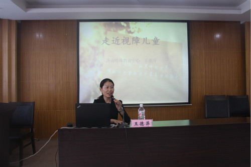 全国优秀教师、济南特教中心学校高级教师王德萍同志为医务工作者授课