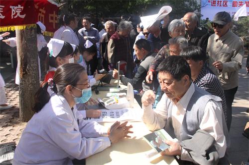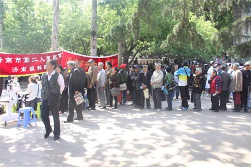 二院义诊台前络绎不绝的群众排起长长的队伍
