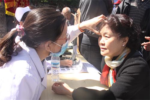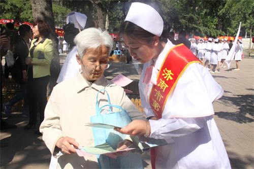 (济南眼科医院)服务分队在院党委书记、院长李金星的带领下,参加了市卫计委在英雄山广场举办的纪念5·12国际护士节济南市南丁格尔志愿服务“进社区,助失能”活动启动仪式暨大型义诊活动。