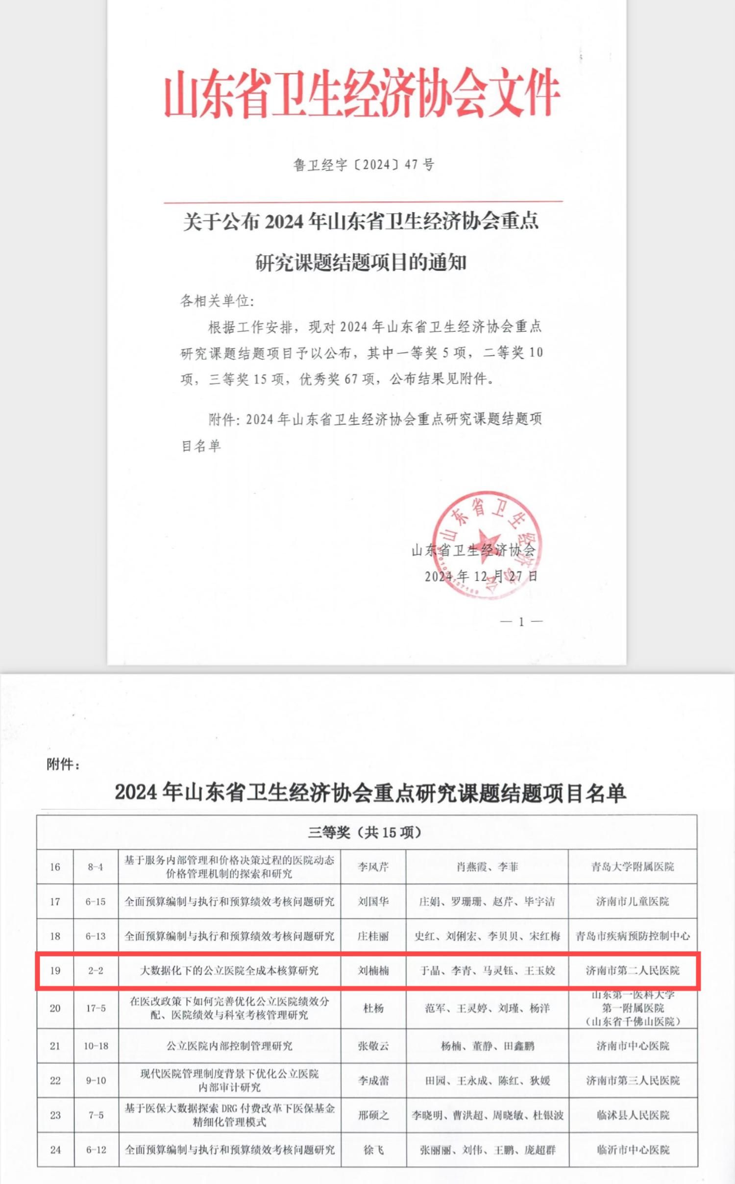 近日,山东省卫生经济协会公布了2024年度重点研究课题结题项目评审结果,云顶赌场