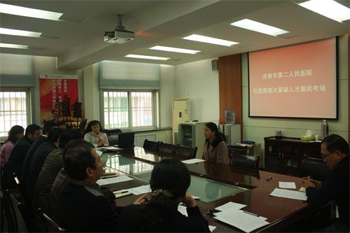 (济南眼科医院)举行了2014年引进高层次紧缺人才面试会。院党委书记、院长李金星担任主考官,党委副书记、纪委书记程晓麟担任面试监督组组长。考核通过专家与应试者座谈交流的方式进行,主要考察应试者语言表达能力、专业基础知识、专业技能和专业技术新进展等。