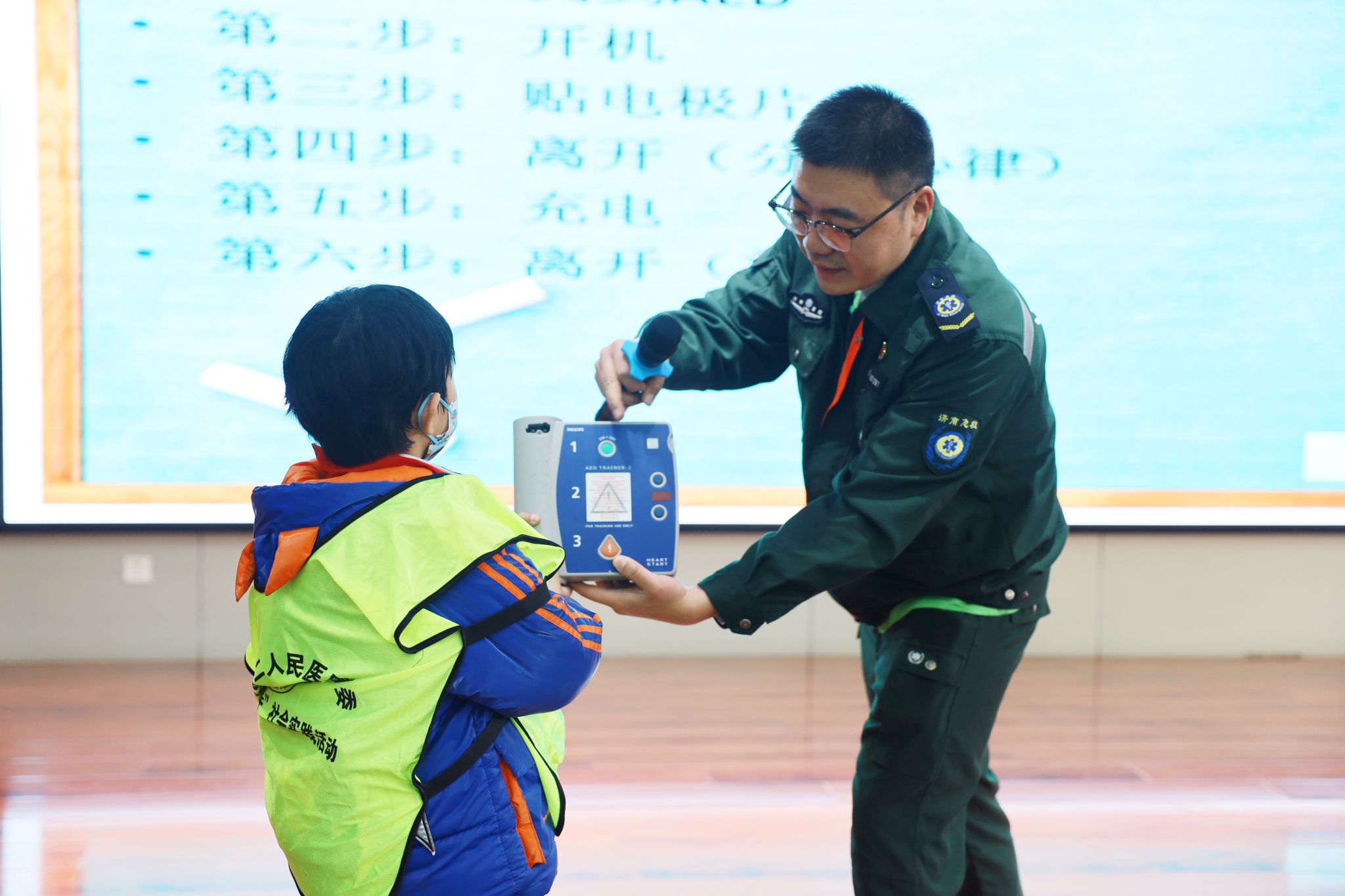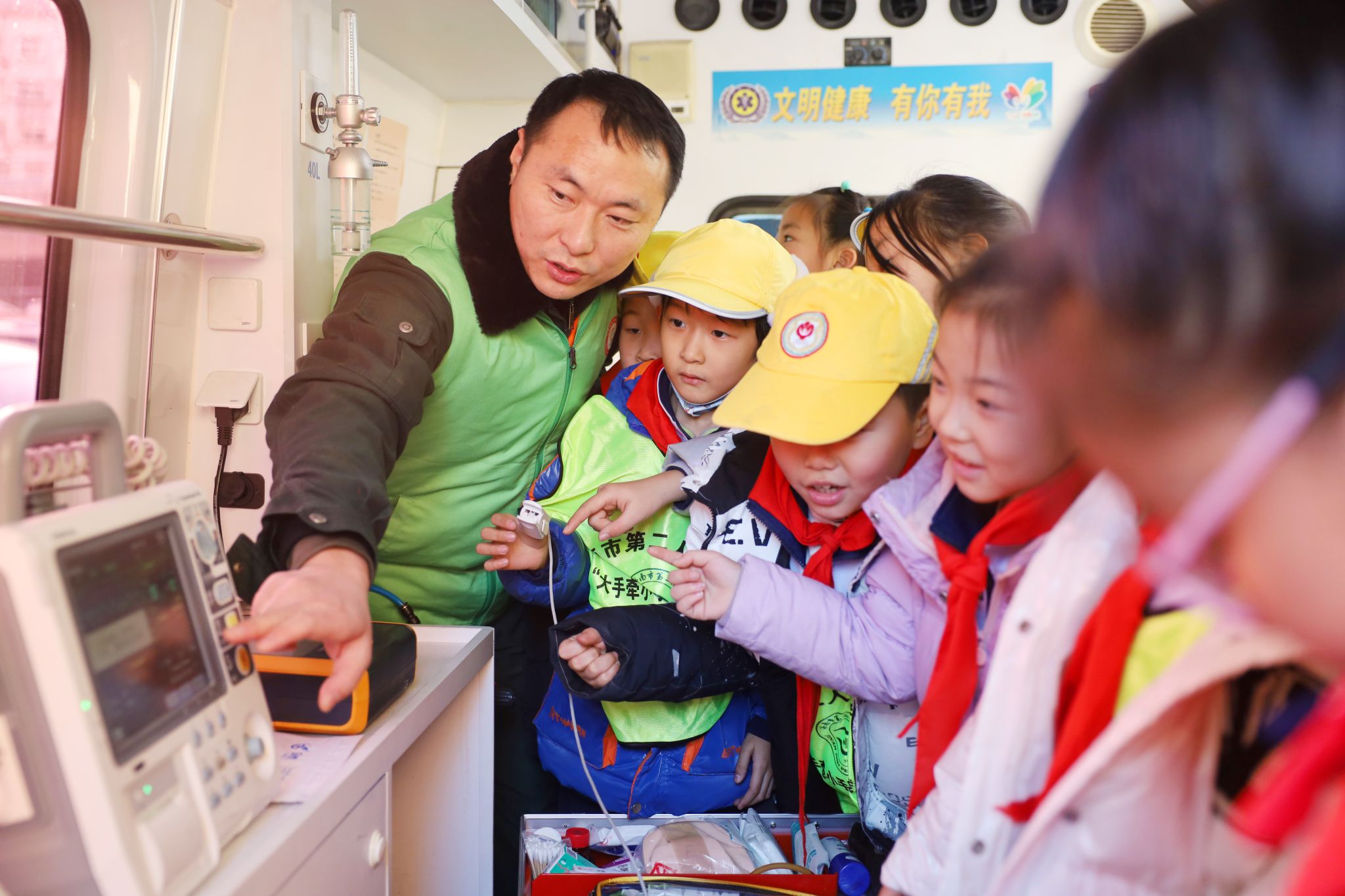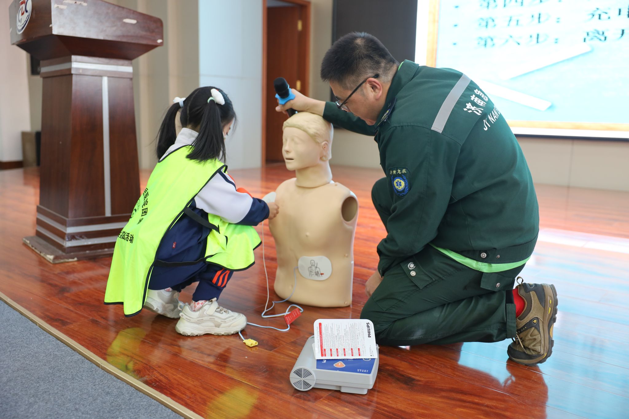 )携手济南市急救中心开展“大手牵小手 小手拉大手”志愿服务活动,来自天桥区枫景小学的130余位学生及家长,怀揣着对医学的好奇与向往,通过“教、学、做”开启了一段沉浸式医学体验。