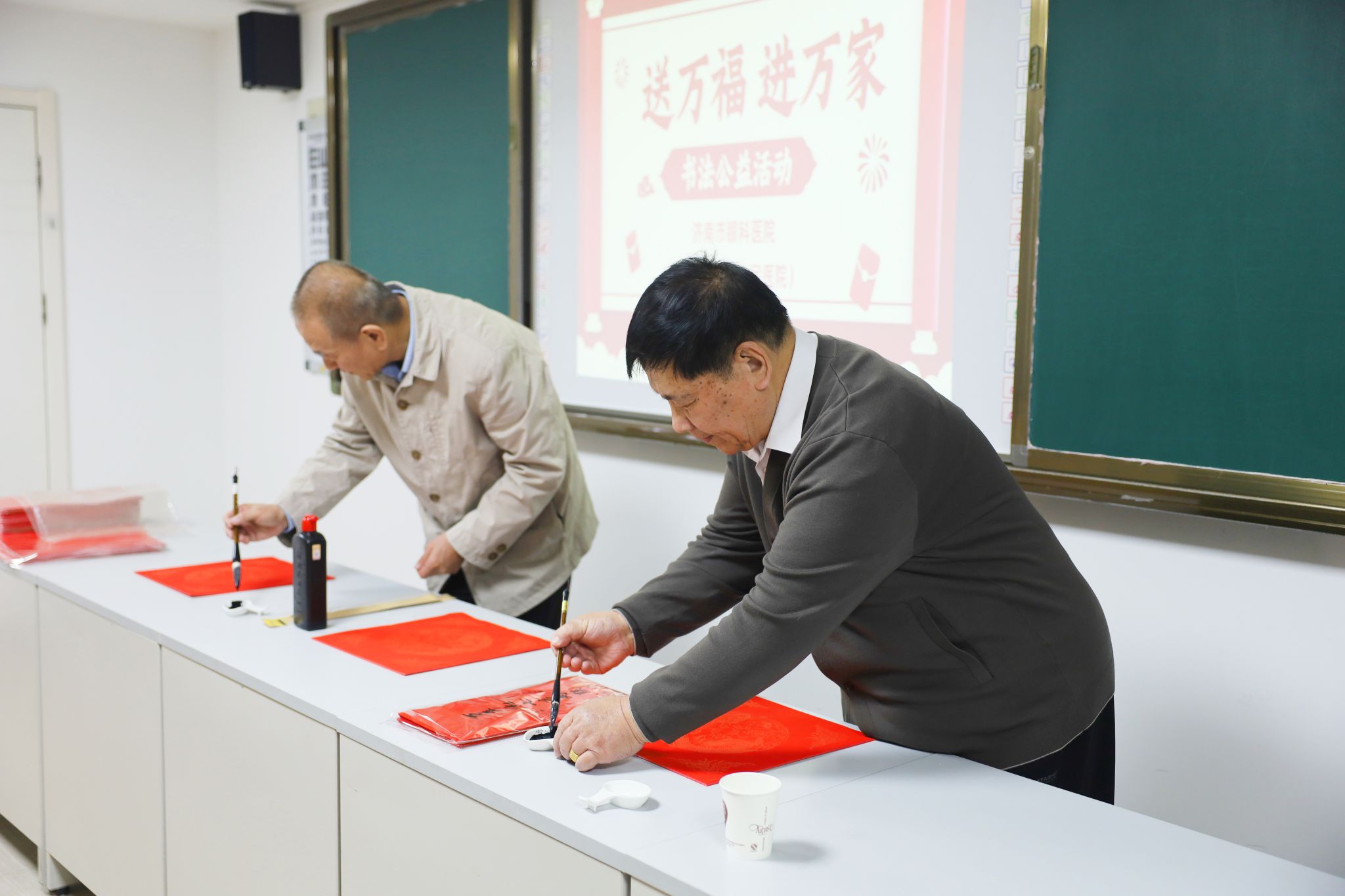 1月21日,活动在医院西院科教楼三楼会议室举行,邀请了医院职工及职工家属中的书法爱好者,他们挥毫泼墨,笔走龙蛇,将新春的祝福和美好的期盼,书写在火红的春联里。