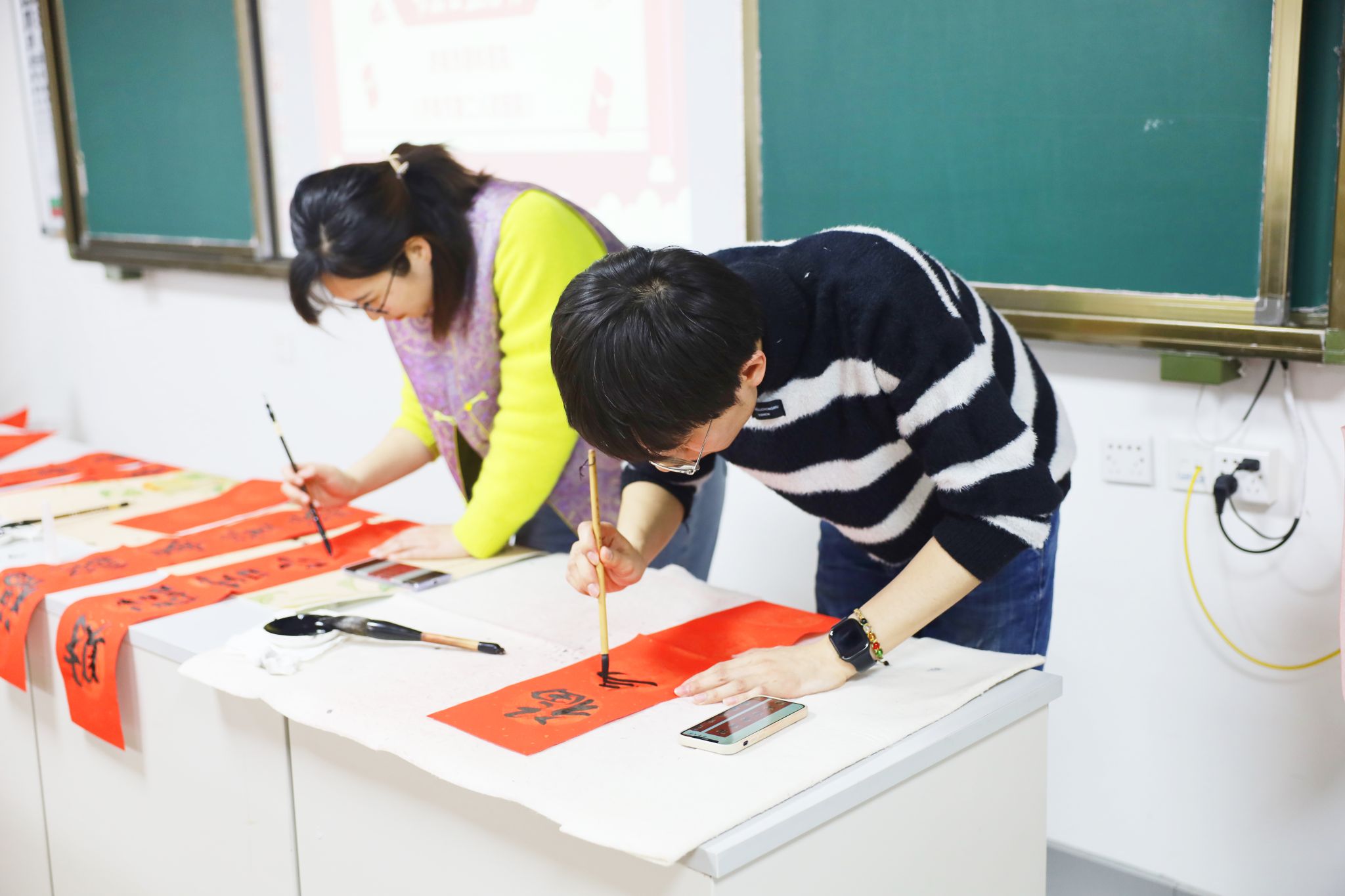 青年职工书写新春对联