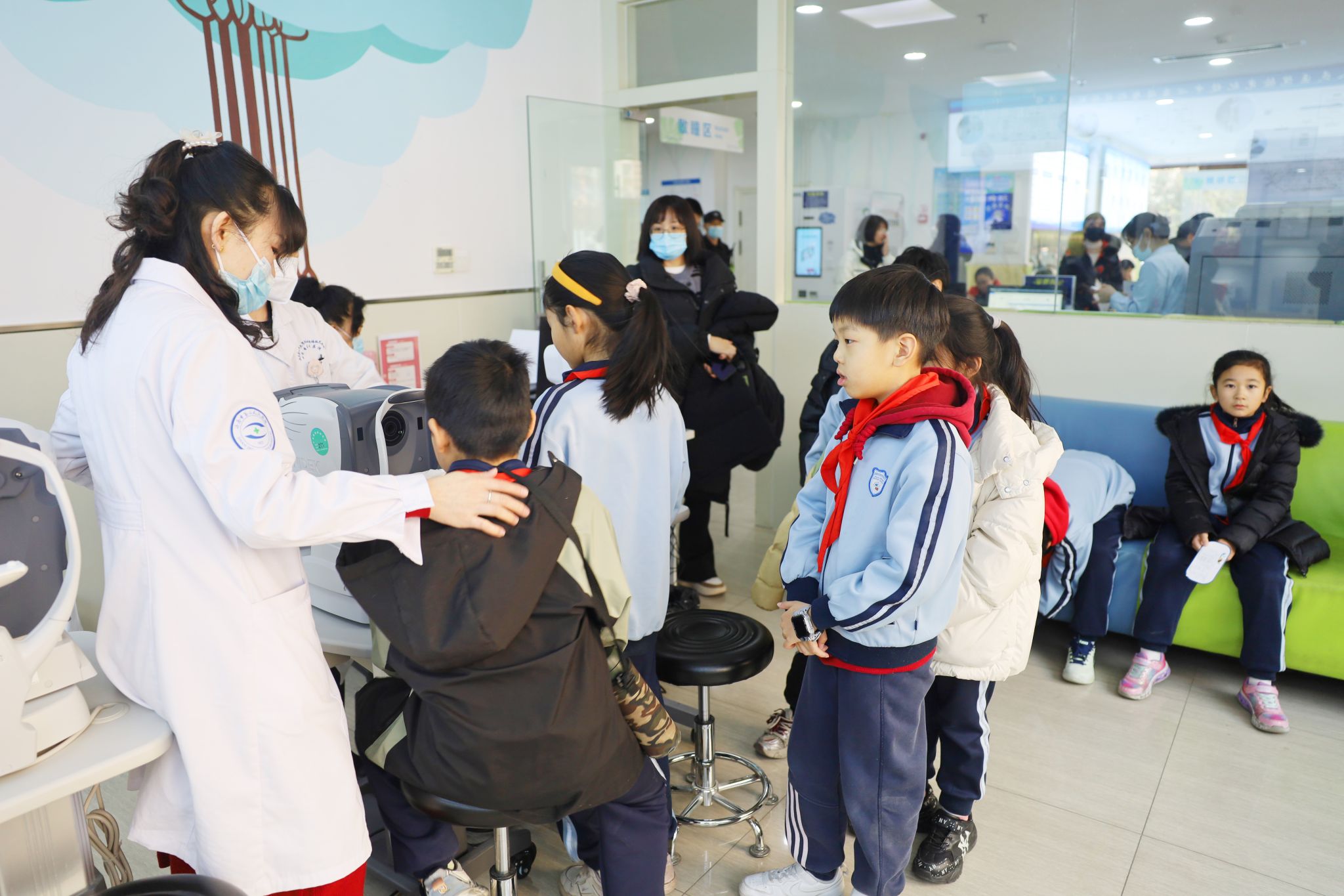 小朋友们排队进行电子验光