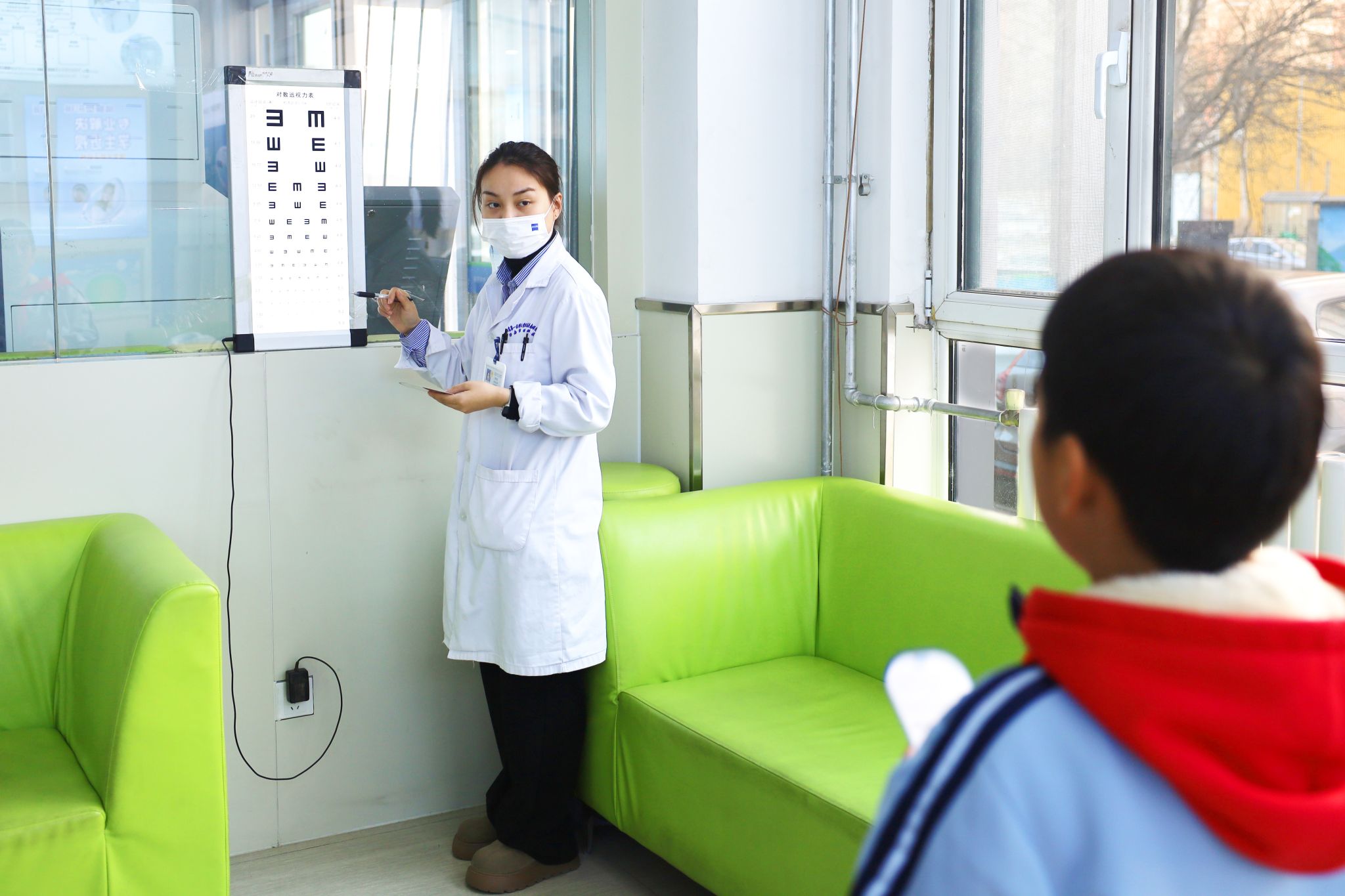 志愿者为小朋友测视力