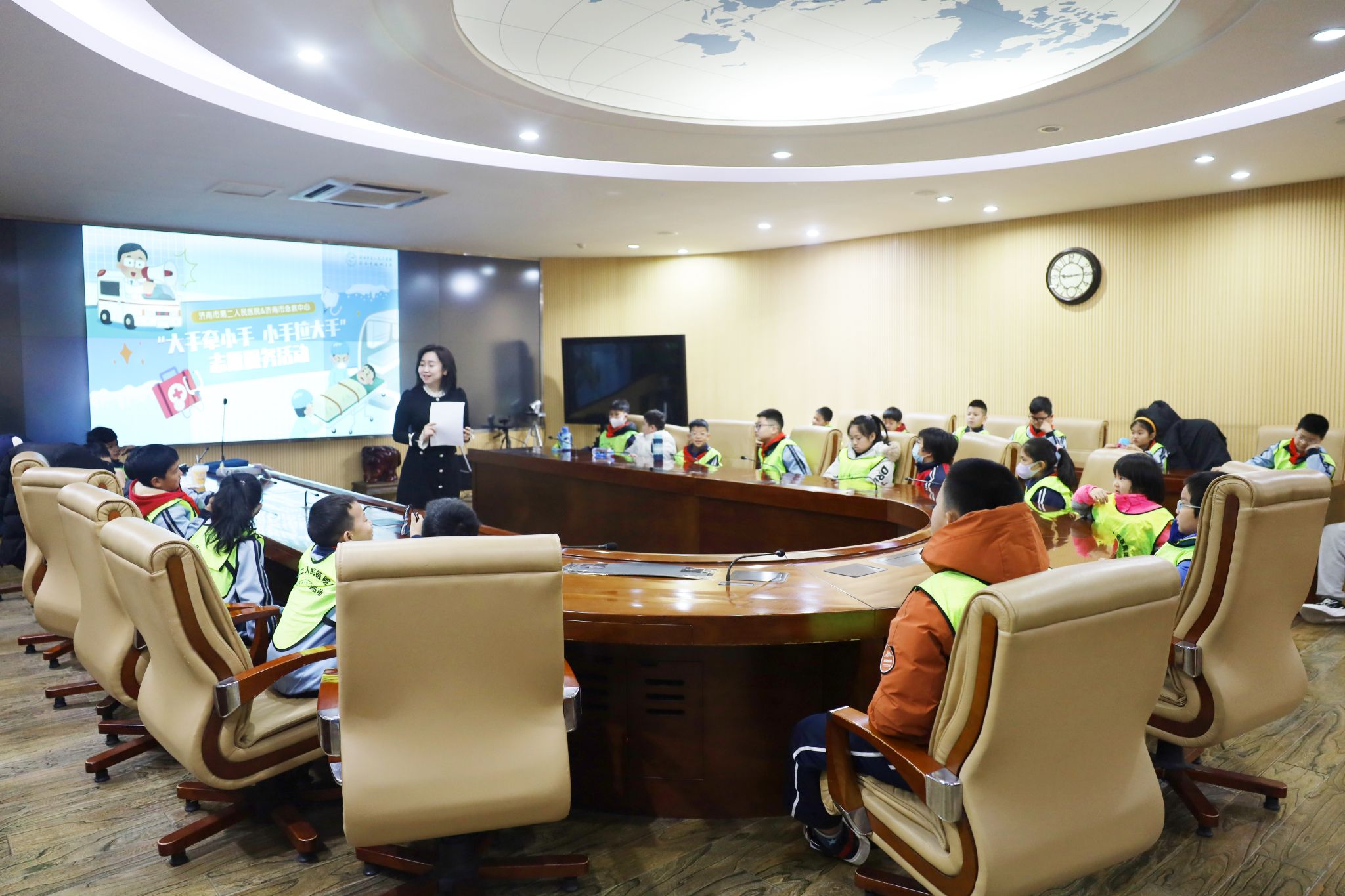 志愿者为小朋友们介绍急救中心日常工作