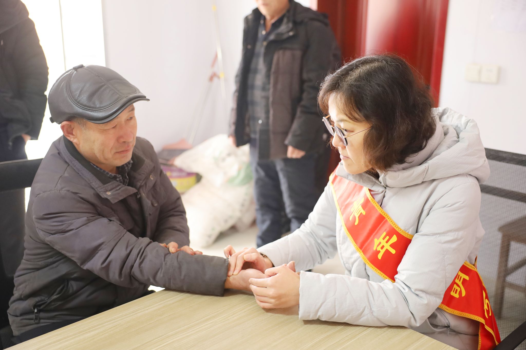 在详细了解当地的实际情况后,院领导与龙桑寺镇负责同志走访慰问了大毕家村老党员和五保户村民。市眼科医院(市二院)青年文明号集体开展“青年文明号助千家”志愿服务活动,为13户困难家庭送去了自发捐赠的防寒棉衣、绘本书本及米面粮油等慰问品。每到一户,志愿者们都详细了解家庭人员健康情况和实际需求,他们发挥自身专业优势,现场为村民测血压、脉诊,并针对患有糖尿病的村民进行眼底检查,短短几句暖心话就拉近了与村民的距离,让他们真切感受到了党的关怀。