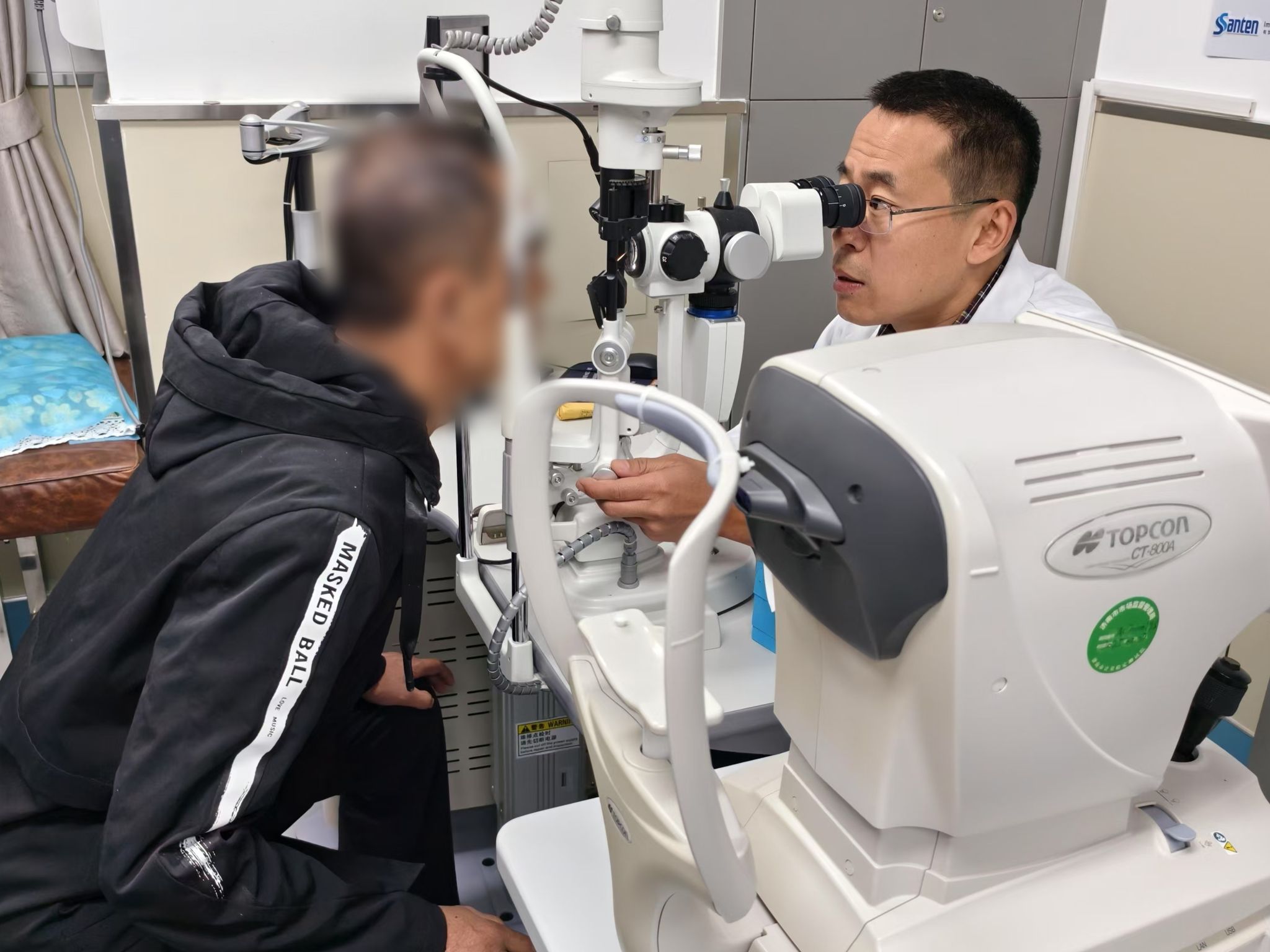 的病房里,一些眼病患者由于病情原因需要留院治疗,需要在病房里度过新年。