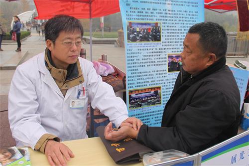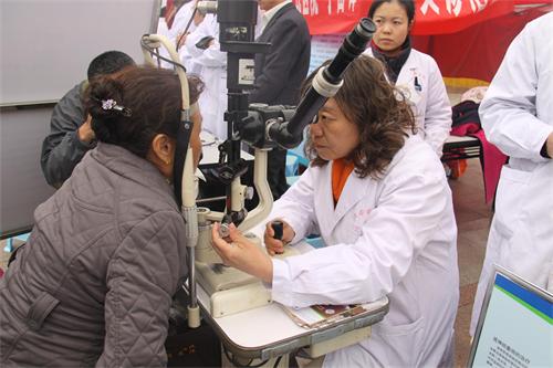 天气虽然寒冷,但义诊现场的每一位专家都认真地为群众进行裂隙灯、眼底镜等检查,并针对广大群众普遍关心的白内障、青光眼、近视等常见眼病问题,耐心讲解、一一作答。专业的检查和优质的服务吸引了大批群众,义诊台前人员络绎不绝。义诊团的专家在向群众普及眼保健知识的同时,更进一步引导群众积极关注眼健康,逐步形成“科学用眼,爱眼护眼”的良好卫生习惯。