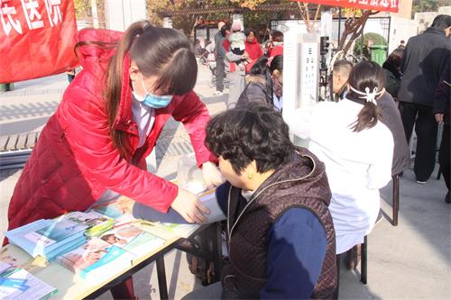 此次,医院选派眼科专家和医护人员六人携带裂隙灯、眼底镜等眼科常用医疗器械开展义诊宣教活动,为群众们送去冬日里的特殊关爱。活动现场寒风料峭,专家们不畏低温,为每位前来就诊的群众仔细检查,详细询问病史,并耐心地回答居民提出的每个问题,让广大群众倍感温暖。